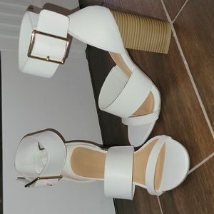 Like New wore once White Chuncky Heels with ankle buckle