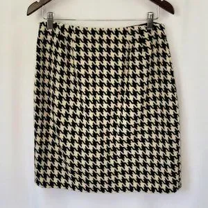 LOFT Wool Blend Black & Cream Hounds Tooth Skirt Size 8P