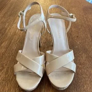 Franco Sarto Amanda Nude Patent Leather & Cork Heels