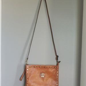 NWOT Genuine Made in Italy brown clutch with gold and metal stud accents , detachable crossbody strap!!