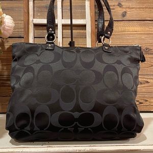 Coach Signature Poppy Diasy Black Jacqard Sateen Canvas Large Tote Bag NWOT
