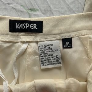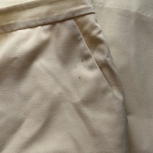 Awesome vintage 1980s slacks. Beautiful cream color. Size 10. Some light staining near the pocket and on the left thigh — possibly a dry cleaner to take this out but I have not tried. They are my moms from the 80s.