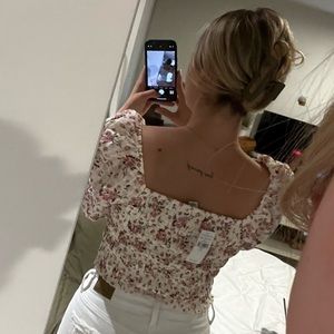NWT American Eagle shirt. Can be worn on or off shoulder. Never found an occasion to wear it and shrinking my closet. Make me an offer :)