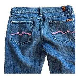 7 for All Mankind Women Jeans Low Rise Medium Wash Pockets Flare Blue 29