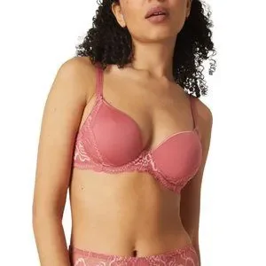 Simone Perele Bra 32C Promesse Padded Rose Pink 3D Plunge Leavers Lace Underwire