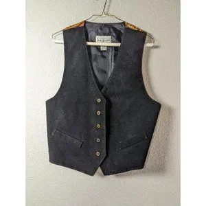 Vintage 90's The Original Arizona Jean Company Black Suede Large Boho Vest