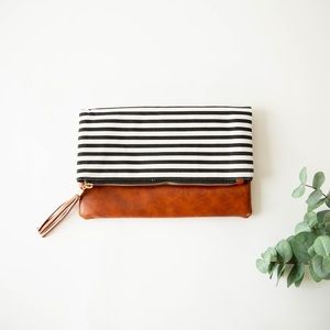 Add a hint of nautical inspiration to your look with this striped fold over clutch that balances functionality and style! Tuck the essentials into the interior and zip them up for security! Then get set to run errands with an accessory that can keep up with all the days plans!