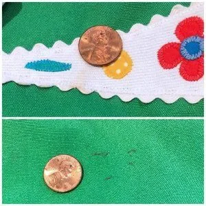 There's a light spot on the applique and some tiny spots on the right bodice (looks like it may have been price sticker residue)