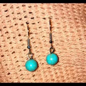 Turquoise and tan color marble look round dangle earrings with silver fishhook backs