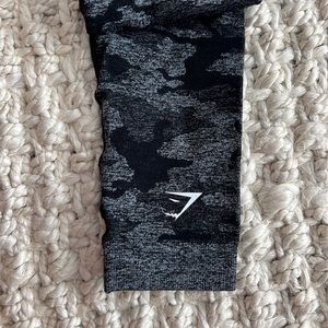 Gymshark Black Camo Leggings. High waisted with scrunch on the back. Size S. Worn once, no damage. Let me know if you have questions!