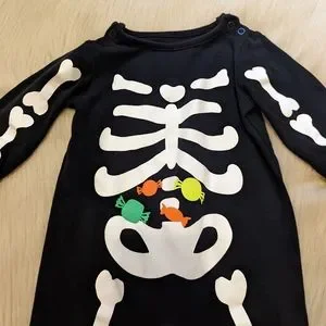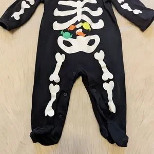 just you and me by Carter's black skeleton footsie PJs w/candy in belly size 9M