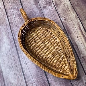 VTG Brown Wicker Rattan Leaf Shaped Boho Basket