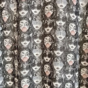 TWIK Dress. Whimsical, fun print greys/light pink on ivory back ground. Back showy gold zipper with ring closure. Fully lined. Measurements: PTP 18"/ Length 32" PRISTINE Zero flaws.