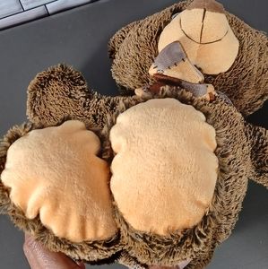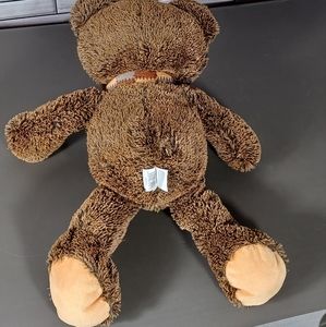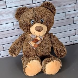 NANCO Brown cuddly Bear has fluffy fur, comes was plaid winter scarf around the plush next.Also both eyes has around silver and black shimmery eyes.