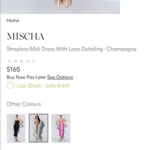 Meshki “mischa” strapless slip dress with lace detailing. I have all 3 colours available in XS (pink, champagne, black).