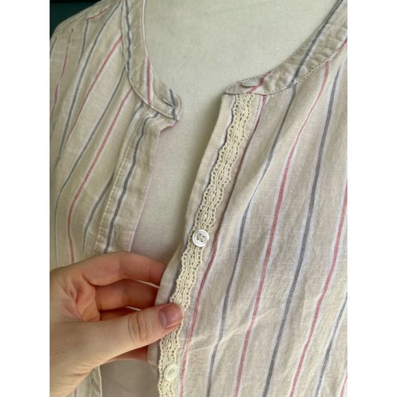 Lane Bryant Striped Button Down Blouse Linen Cotton Blend XL