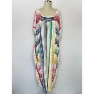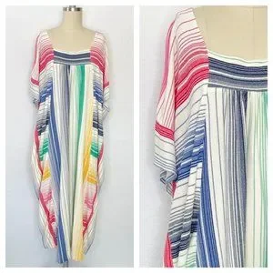 Vintage 70s 80s Rainbow MuuMuu Kaftan House Dress