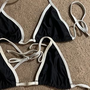 LOT 2 American Apparel String Triangle Bikini Tops Slide Black w/Metallic Silver