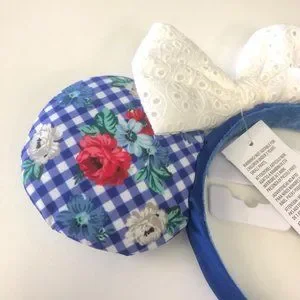 Disney Parks Gingham Cottage Flower Checkered Minnie Mouse Ears Headband - NEW
