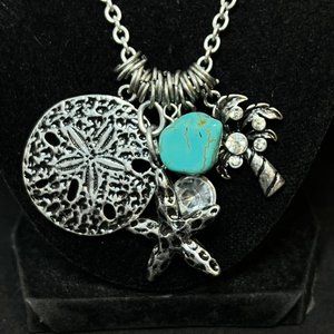 New Beach Theme Silver Tone And Faux Turquois Necklace (3734)