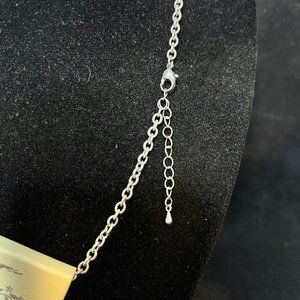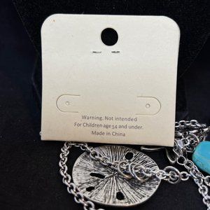 New Beach Theme Silver Tone And Faux Turquois Necklace. It has the new paper tag with it. There are no hallmarks.