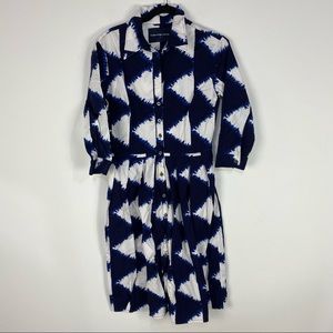 Samantha Sung Blue and White Abstract Collared Button Front Dress