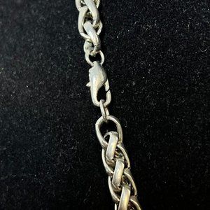 Vintage Chunky 17" Silver Tone Foxtail Necklace W/Heavy 2 Toned Pendant (3736)
