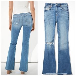 SOLD American Eagle Super High Waist Ripped Flare Jeans sz 14