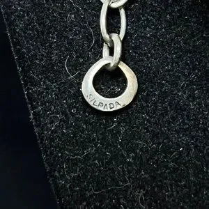 Silpada Sterling Silver And Leather 5 Strand Necklace W/2 Tone Double Sided Howlite Pendant. The necklace is signed Silpada 925.