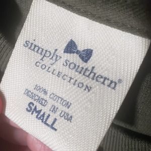 Simply Southern Collection olive long sleeve tee shirt with Psalm 46:5 God is within her, She will not fall. 100% cotton. Very nice condition. Sz Small. Measures 17" across pits and 28" long from top of shoulder to hem. Nonsmoking home with awesome pugs.