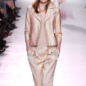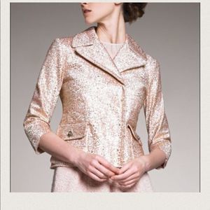 Stunning Nina Ricci Gold Rose Jacquard Print Jacket. Fully lined, stunning jacket. I bought at neimans. Runs a size smaller. Fits more like an 8. It is a 42/10.