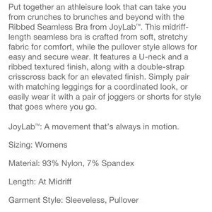 JoyLab Ribbed Seamless Sports Bra NWT Brown