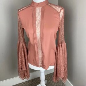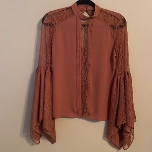 NWOT. Express Handkerchief Sleeve Lace Blouse Top Peach Pink. XS.