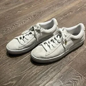 PUMA BASKET REMASTERED SUEDE SNEAKERS, size 9 in white