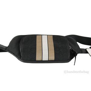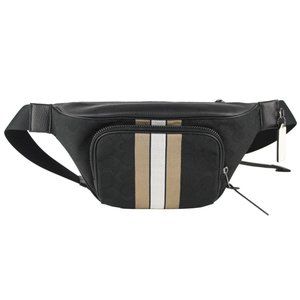 NWT Coach Men's Thompson Black Varsity Stripe Belt Bag Logo Jacquard Canvas LGE