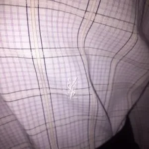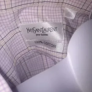 authentic YSL long sleeve polo, in stripe light purple with white monogram at the front. like new condition. size XXL