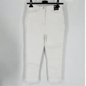 White High Waist Split Hem Skinny Capri Jeans Denim Pants