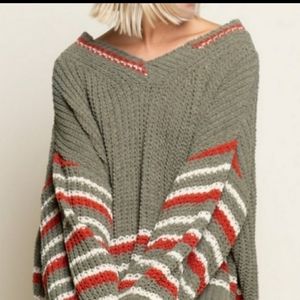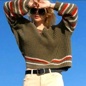 POL BEST SELLER BOYFRIEND Chunky Green And Multi Stripe Color Cozy Sweater
