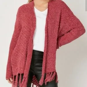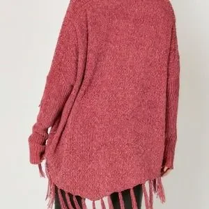 Textured Marbled Knit Fringe Tassel Hem Detailed Open Cardigan