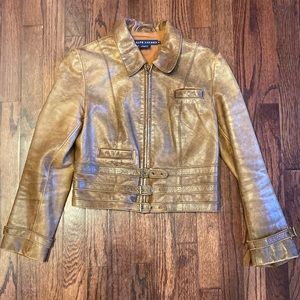 Ralph Lauren Blue Label Aviator Strap Cropped Brown Leather Jacket. Size M.