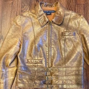 Ralph Lauren Blue Label Aviator Strap Cropped Brown Leather Jacket