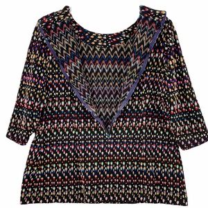 Vintage Handmade Black Zipper Back Shirt with Rainbow Colors Detailing
