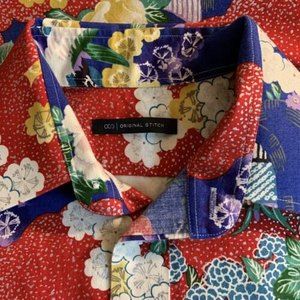 Brand : Original Stitch From my research this is a brand that you send in measurements & desired fabric & they construct for you! Made in Japan 100 % Cotton Looks like some metallic in fabric Button Up Button Cuffs Im guessing size large (please see measurements in photos)
