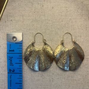 These are bohemian style gold tone dangle earrings. They are about 2” long and a little on the heavier side. Purchased handmade from Etsy.