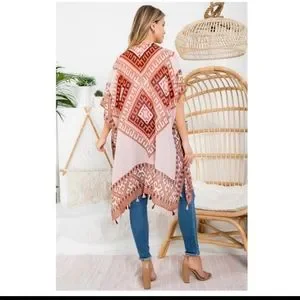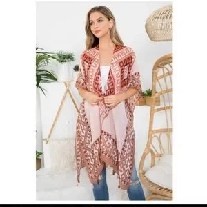 Polyester, lightweight lounge wear. One size fits most. Colors are like burnt red, burnt orange, white