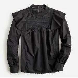 J. Crew Black Cotton Balloon Ruffle Sleeve Lace Yoke