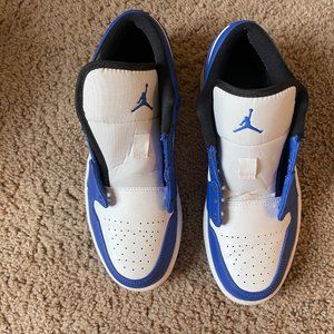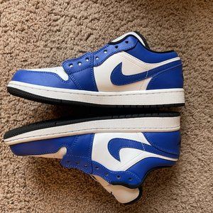 WORN ONCE, JORDAN 1 LOWS, GAME ROYALS, SIZE 7.5 MEN, COMES WITH BLACK LACES, BOUGHT FROM STOCKX