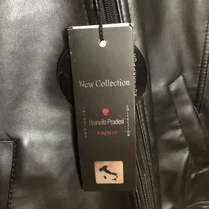 Leather blazer from the experts in Florence Italy; by Brunello Pradeshi jacket is of black super soft lambskin; double snap adjustable sleeves; inner pocket; 2 roomy outer pockets. New with tags; Mens Medium - 24” pit to pit 24” sleeves 26” shoulder to waist