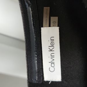 Calvin Klein Strapless Dress. Silicone strip on top back keeps dress in place with boning by chest area to keep you all in and pushed forward. Bra area has doubled material . Measuring 29 inches long 17 inches armpit to armpit 16 inches waist. Zipper on the back is hidden and it's 13 inches with an eye and hook top closure. 98% cotton 2% Spandex, 72% Rayon 24% nylon 4% Spandex. Size 10