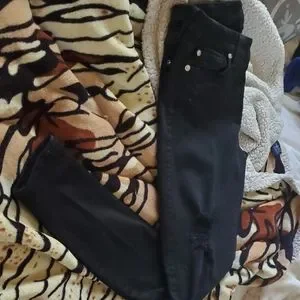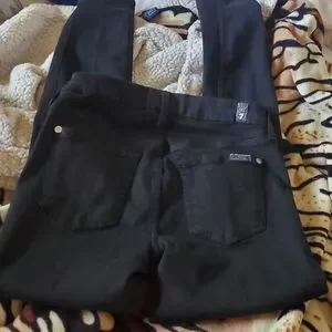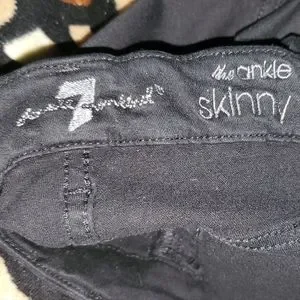 7 for All Mankind B Air Ankle Skinny Mid Rise Distressed Black Jeans. Gently used. Dry cleaned. Distressed at knees and at upper thigh.